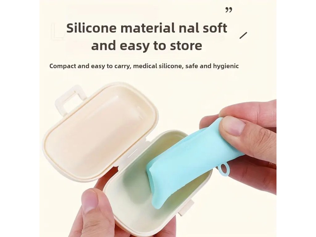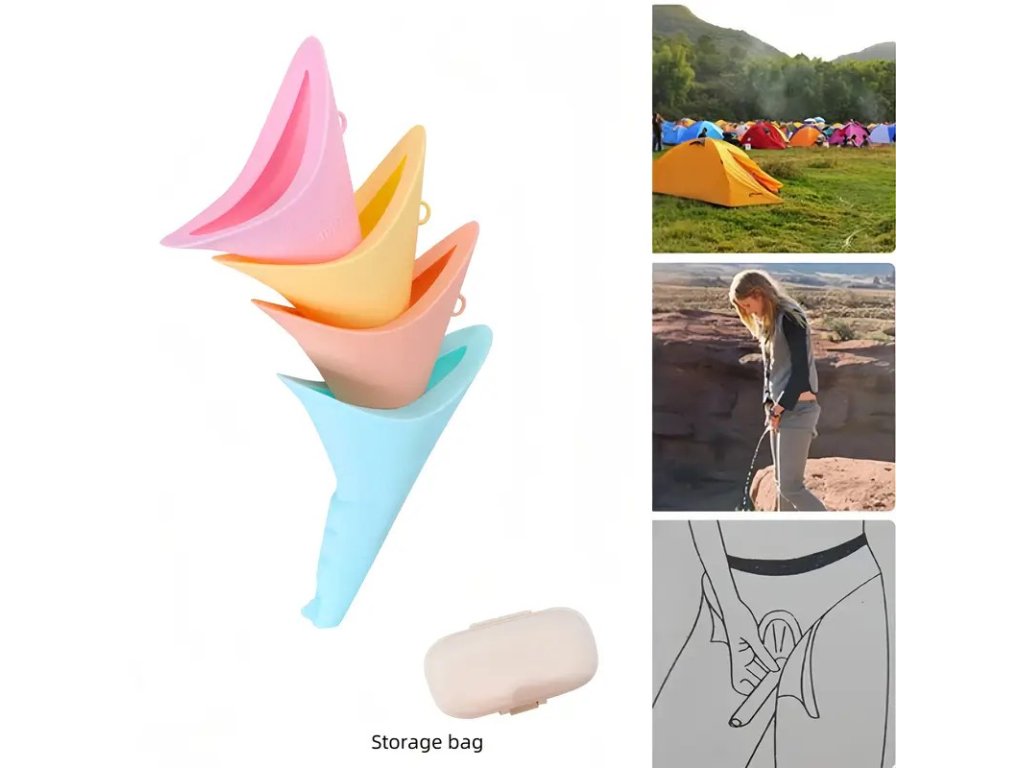 Silikonový dámský urinál, omyvatelný, pro opakované použití, plastové pouzdro není zcela těsnící, především minimalizuje zabraný prostor.