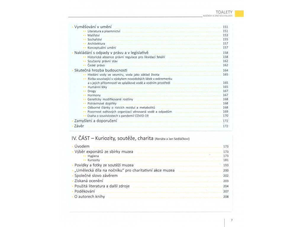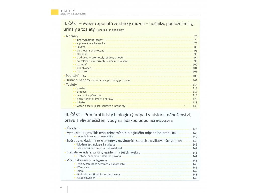 Po téměř dvaceti letech intenzivní badatelské činnosti, budování sbírky (která dnes čítá přes 2200 exponátů) a s bohatými zkušenostmi s provozováním Muzea historických nočníků a toalet se autoři rozhodli napsat a vydat tuto knihu. Pro přehlednost ji uspořádali do čtyř na sebe navazujících částí: