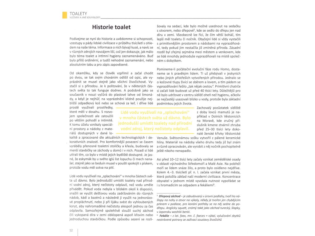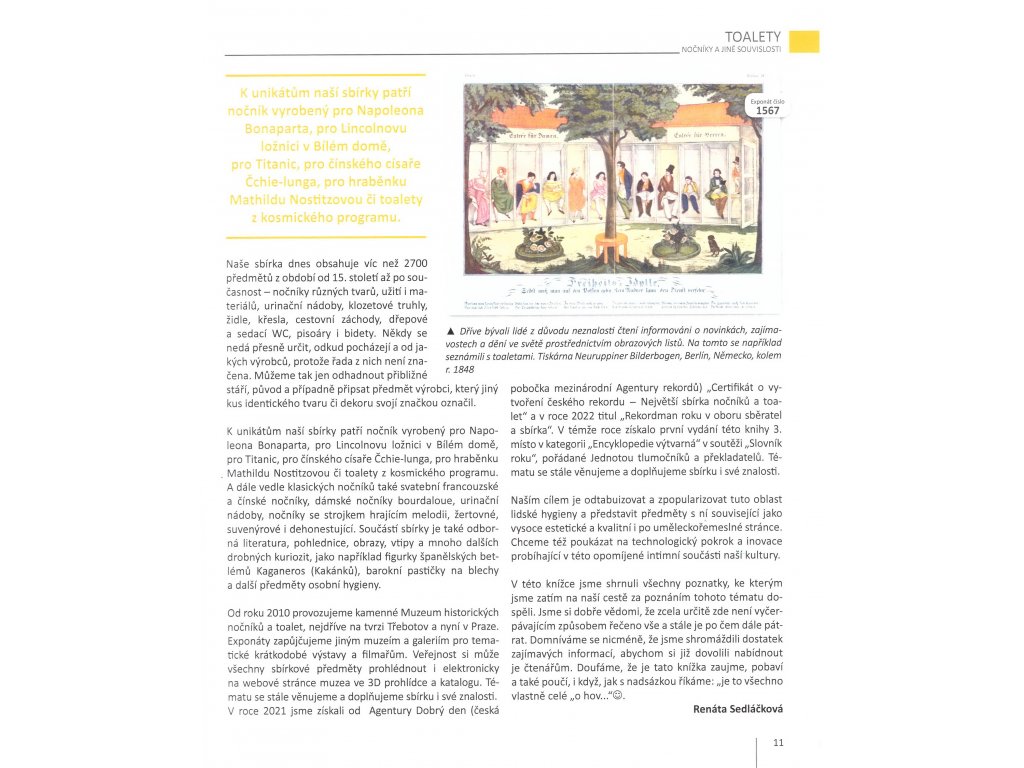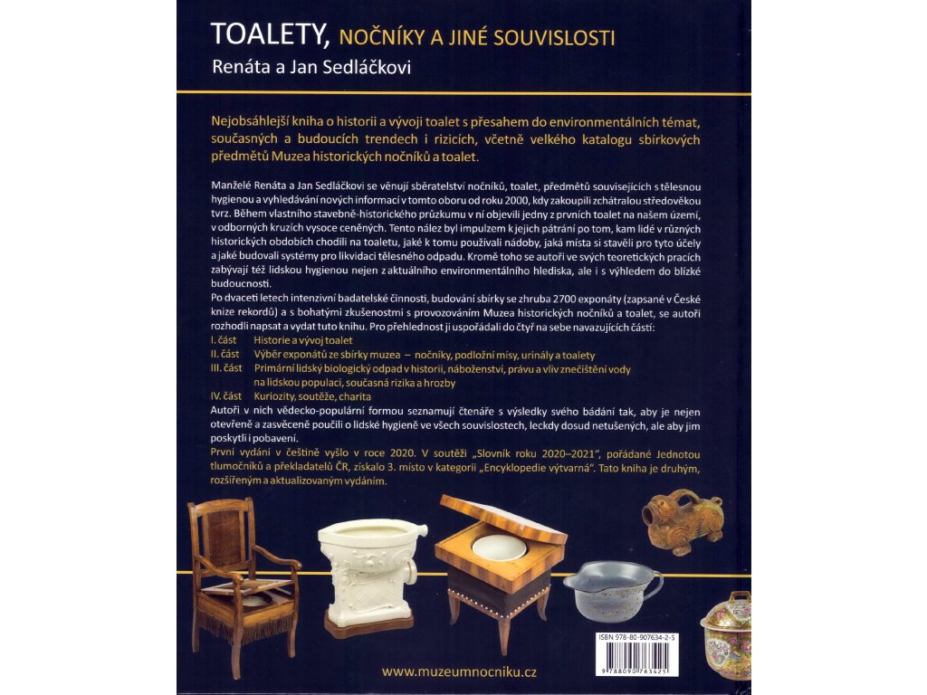 Nejobsáhlejší kniha o historii a vývoji toalet s přesahem do environmentálních témat, současných a budoucích trendech i rizicích, včetně velkého katalogu sbírkových předmětů Muzea historických nočníků a toalet.